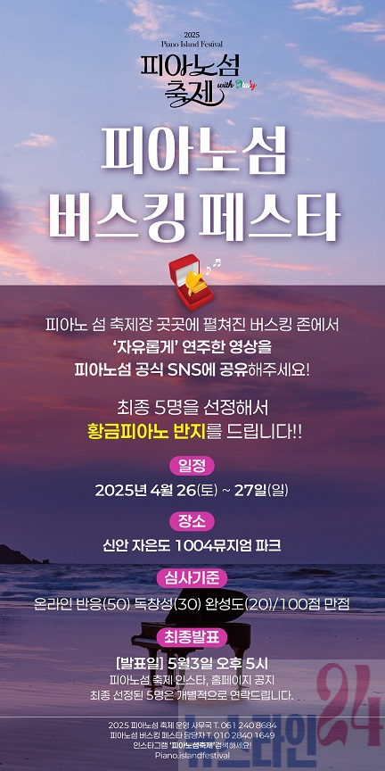 오는 4월 26일부터 27일까지 피아노의 섬 자은도에서 개최되는 ‘2025 피아노섬 축제’에는 특별한 이벤트가 기다리고 있다. 전년도에 진행했던 ‘나도 피아니스트’의 후속 프로그램인 ‘피아노섬 버스킹 페스타’다.
