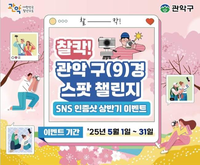 관악구(구청장 박준희)가 대표 관광명소를 널리 알리고, 지역 관광 활성화를 위해 `찰칵! 관악 구(9)경 스팟 챌린지` SNS 인증샷 이벤트를 개최한다.