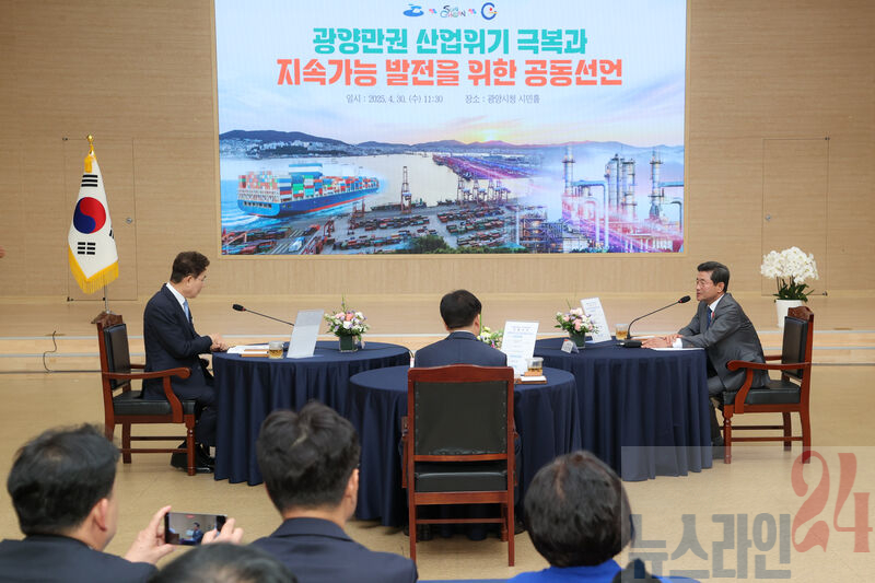 여수‧순천‧광양시 행정협의회는 4월 30일 오전 11시 30분, 광양시청 시민홀에서 ‘광양만권 경제 위기 극복과 지속가능 발전을 위한 공동선언을 통해, 철강‧석유화학 등 지역 산업 위기 극복을 위한 3개 시의 공동 대응 방안을 공식 발표했다.