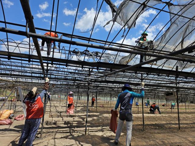 산불피해지역 의성 단촌면 비닐하우스 정리 자원봉사활동 모습(사진 : 광주광역시자원봉사센터)