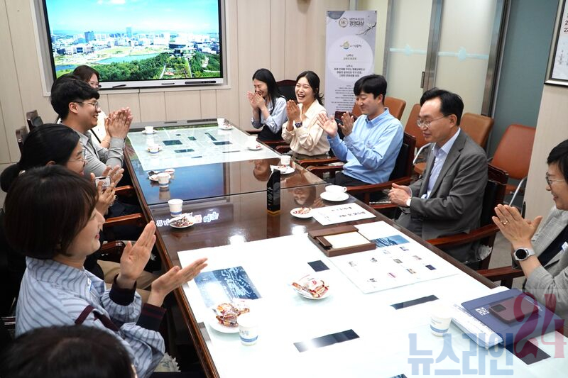 수상 기념촬영에는 시민 생활과 밀접한 실무자들이 함께 했으며 이어진 차담에서는 탄소중립 실천을 위한 산단 통근버스를 시청 직원도 활용하는 방안 등 행정혁신 아이디어도 공유했다.