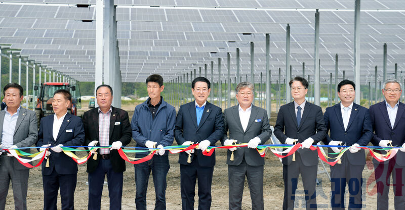 김영록 전라남도지사가 8일 영광 염산면 월평마을에서 열린 ‘주민주도 영농형 태양광 1단계(1MW) 발전단지 준공식’에서 주요내빈들과 테이프커팅을 하고 있다.