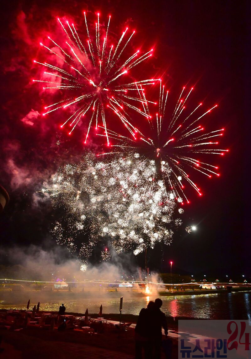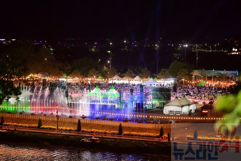 장성군이 9일 ‘제24회 장성 황룡강 길동무 꽃길축제’ 전야제를 갖고 축제의 개막을 알렸다. 비바람이 부는 악천후에도 5000여 명의 발길이 축제장으로 모였다.