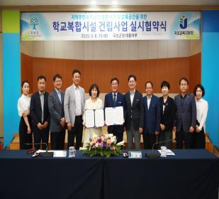 곡성군(군수 조상래)은 곡성교육지원청(교육장 노명숙)과 지난 8일 곡성군청 대통마루에서 군·교육청 관계자 20여 명이 참석한 가운데 ‘지역주민과 학생의 공동 여가 및 교육 공간 조성’을 위한‘곡성중학교 학교복합시설 건립사업’에 관한 실시협약을 체결했다고 밝혔다.