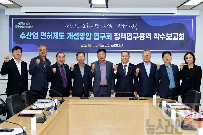 전남도의회 의원연구단체 수산업 면허제도 개선방안 연구회(대표의원 신의준)는 지난 5월 9일 전라남도의회 소회의실에서 ‘수산업 면허제도 개선에 관한 연구’ 용역에 대한 착수보고회를 열고 본격적인 연구 활동을 시작했다.