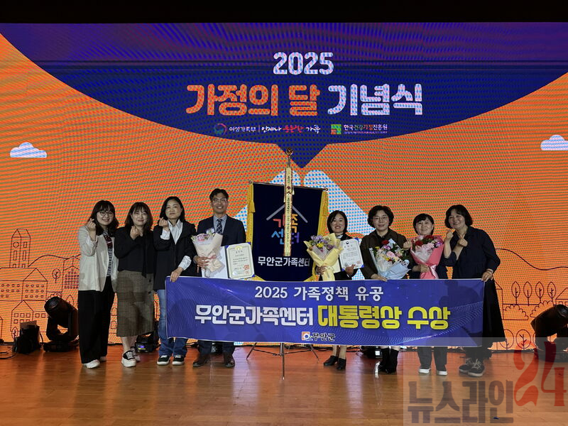 전남 무안군(군수 김산)은 무안군가족센터(센터장 정준수)가 지난 8일 여성가족부 주관 2025년 가정의 달 기념행사에서 가족정책분야 대통령상을 수상했다고 밝혔다.