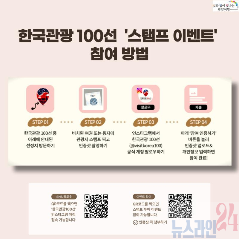 광양시는 한국관광공사와 함께 여행하기 좋은 5월 한 달 동안 ‘2025~2026 한국관광 100선’ 스탬프 투어 이벤트를 진행한다고 14일 밝혔다.