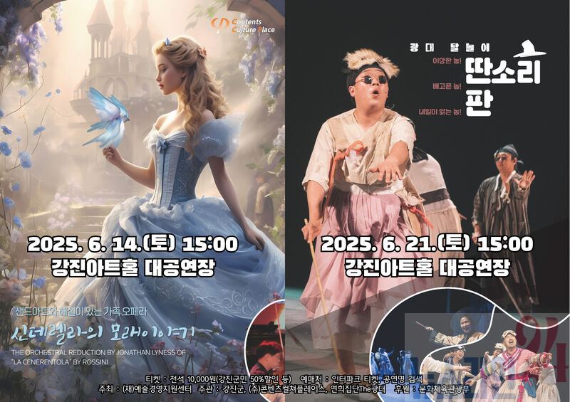 강진아트홀은 오는 6월 14일 상연되는 ‘신데렐라의 모래이야기’에 샌드아트 무료 체험부스와 유료 예매자 선착순 50명을 대상으로 신데렐라 퍼즐 증정 이벤트를 진행하고 이어 21일 ‘딴소리 판’ 공연 현장에서는 암행‘거’사 라이브 포토존 등을 운영하며 현장을 찾는 관광객에게 색다른 즐거움을 제공할 예정이다.