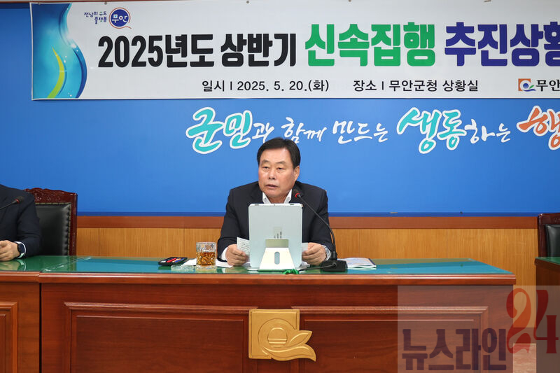 전남 무안군(군수 김산)은 20일 군청 상황실에서 2025년 상반기 신속집행 추진상황 보고회를 개최했다.