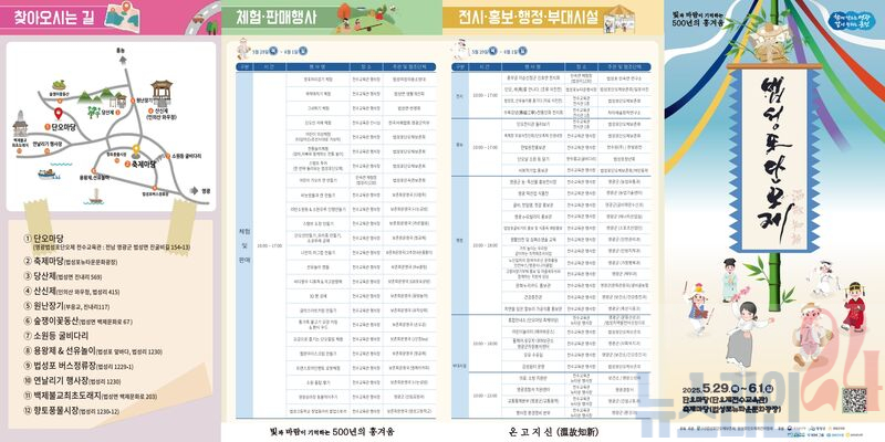 특히 올해 축제에서는 칠산바다를 배경으로 법성포단오제의 전통과 정서를 담은 창작 가무극이 첫선을 보이며 ‘단오 어린이 우리옷 뽐내기대회’, ‘낙화놀이’, ‘학생 차예절 경연대회’ 등 다양한 신규 프로그램이 마련되어 가족 단위 관람객은 물론 청소년과 지역 학생들에게도 흥미롭고 뜻깊은 경험을 제공할 것으로 기대된다.
