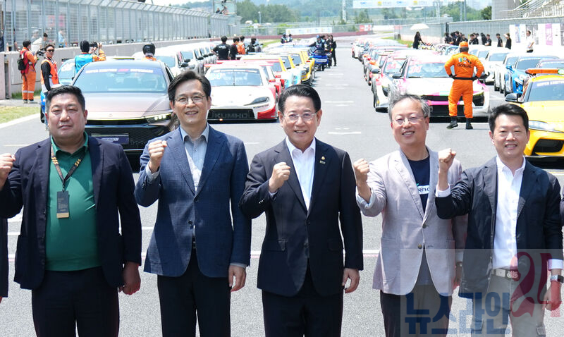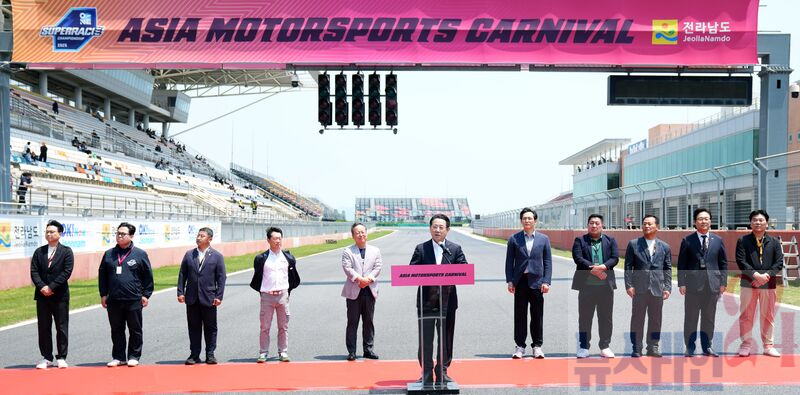 김영록 전라남도지사가 25일 영암 국제자동차경주장에서 열린 ‘2025 아시아 모터스포츠 카니발 개막식’에 참석, 주요내빈과 기념촬영을 하고 있다.