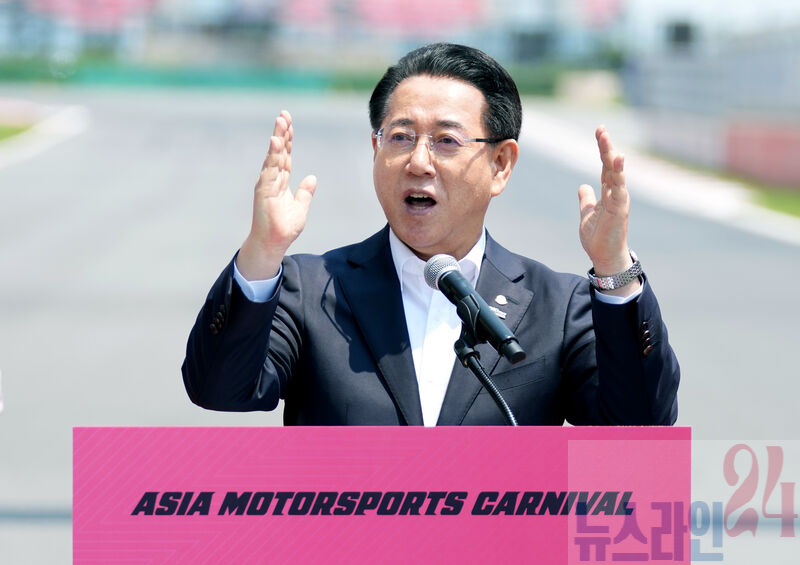 김영록 전라남도지사가 25일 영암 국제자동차경주장에서 열린 “2025 아시아 모터스포츠 카니발 개막식‘에 참석, 환영사를 하고 있다.