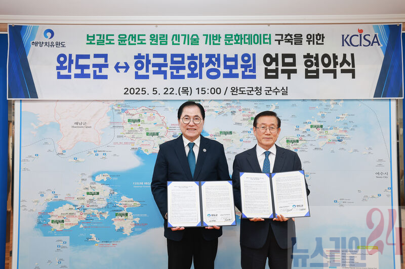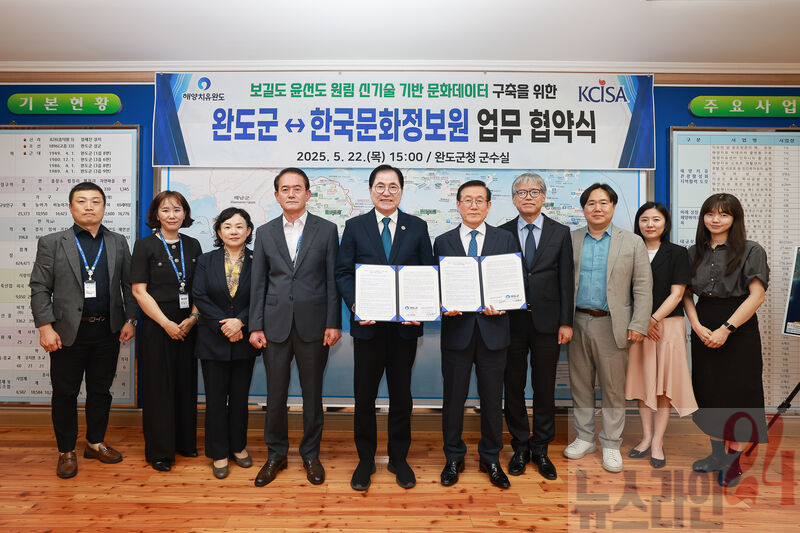 완도군(군수 신우철)은 지난 22일 한국문화정보원(원장 정운현)과 ‘2025년 신기술 기반 문화 데이터 구축 사업’에 대한 업무 협약을 체결했다.