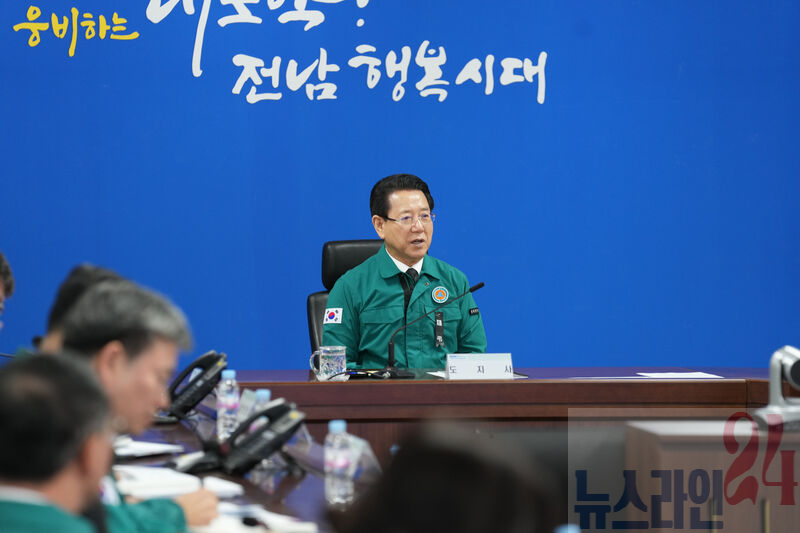 김영록 전라남도지사가 6일 오후 도청 재난종합상황실에서 ‘1.7.~9. 대설·한파 대처상황 점검회의’를 주재하고 있다.