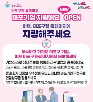 마포구(구청장 박강수)는 경기 침체의 지속화로 많은 어려움을 겪고 있는 관내 중소기업 업체를 보호하고 지역경제 활성화를 도모하기 위해 마포구청 누리집에 `마포기업 자랑해요` 게시판을 신설했다.