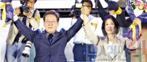 이 대통령은 당선이 확실시된다는 지상파 3사의 개표 방송이 나오자 오후 11시48분쯤 인천 계양구 자택을 나와 여의도 중앙당사로 이동했다. 선대위 관계자들을 격려한 이 대통령은 국회 앞에 마련된 별도 무대로 옮겨 “경제를 살리고 민생을 회복시키겠다”며 “온 힘을 다해 여러분의 고통스러운 삶을 가장 빠른 시간 내에 가장 확실하게 회복시켜 드리겠다”고 했다.