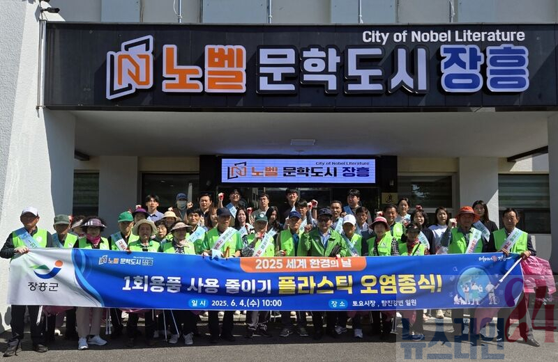 장흥군은 4일 토요시장과 탐진강변에서 2025 세계환경의 날(6. 5.) 기념 탄소중립 실천 거리 캠페인과 플로깅 행사를 하였다.