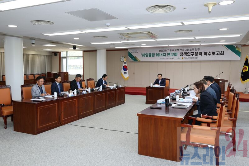 전라남도의회 의원연구단체인 ‘해양융합 에너지 연구회(대표의원 정길수)’는 6월 5일 도의회 초의실에서 ‘해양에너지 산업과 연계한 기본소득 연구용역’을 위한 착수보고회를 개최했다.