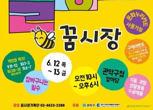 꿈시장 개장과 운영에 대한 자세한 사항은 관악구청 일자리벤처과(02-879-5753)로 문의하면 된다.