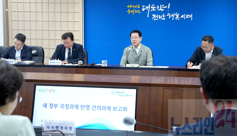 김영록 전라남도지사가 10일 오전 도청 서재필실에서 이재명 정부 출범에 발맞춰 ‘새정부 국정과제 반영 건의과제 발굴 및 보고회’를 주재하고 있다.