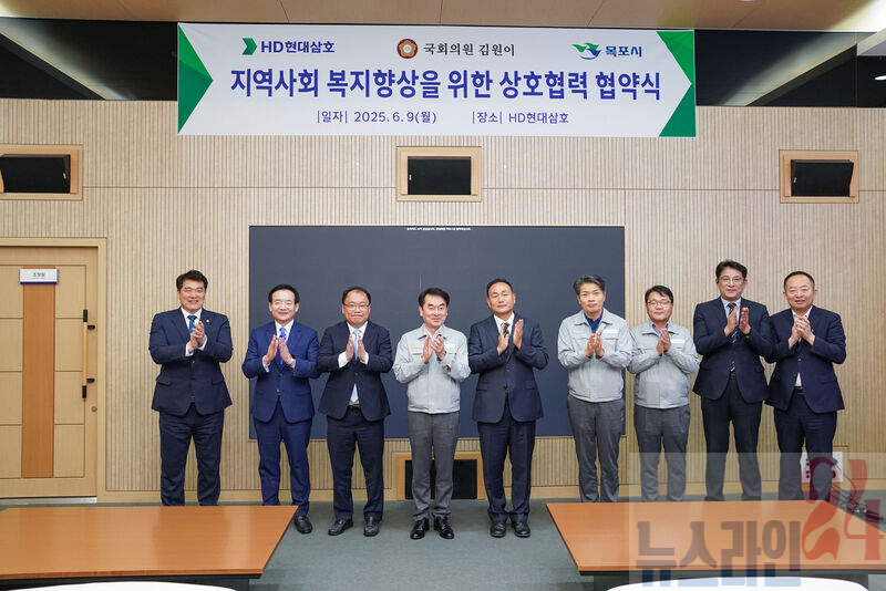 목포시는 HD현대삼호, 김원이 국회의원과 함께 지역사회 복지향상과 주민 삶의 질 개선을 위한 ‘지역사회 복지향상을 위한 상호협력 업무협약’을 체결했다.