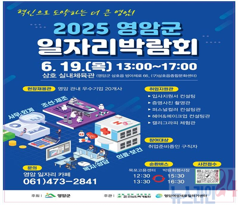 영암군(군수 우승희)이 구직자와 기업을 현장에서 연결하는 ‘2025 영암군 일자리 박람회’를 이달 19일 삼호실내체육관에서 개최한다.