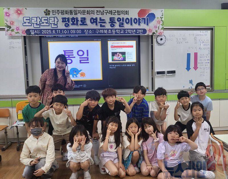 민주평화통일자문회의 구례군협의회(회장 최덕로)는 6월 11일 구례북초등학교 2학년 교실에서 학생 및 교사 등 50여명이 참석한 가운데 ‘도란도란 평화로 여는 통일이야기’를 개최했다.
