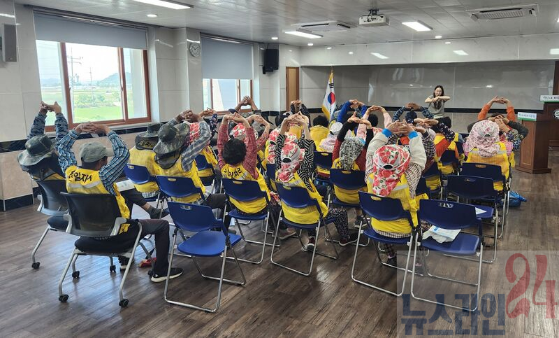 사업 참여 어르신 30명이 참가한 가운데 가벼운 체조로 시작된 이번 교육은, 혹서기 대비 폭염 예방 기본수칙을 알리기 위해 마련됐다.