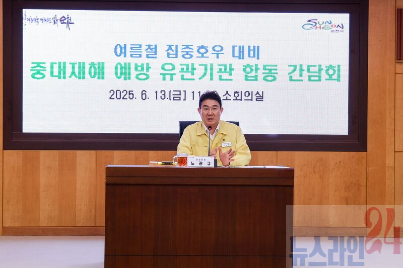 순천시(시장 노관규)는 13일 시청 소회의실에서 2025년 여름철 집중호우 등 풍수해에 대비 중대재해 예방 유관기관 합동 간담회를 개최했다고 밝혔다.