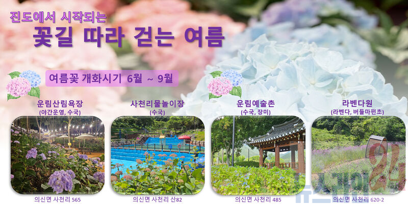 진도군은 오는 18일(수)부터 8월 31일(일)까지 운림산림욕장 내 수국 공원을 야간 개장한다고 밝혔다.