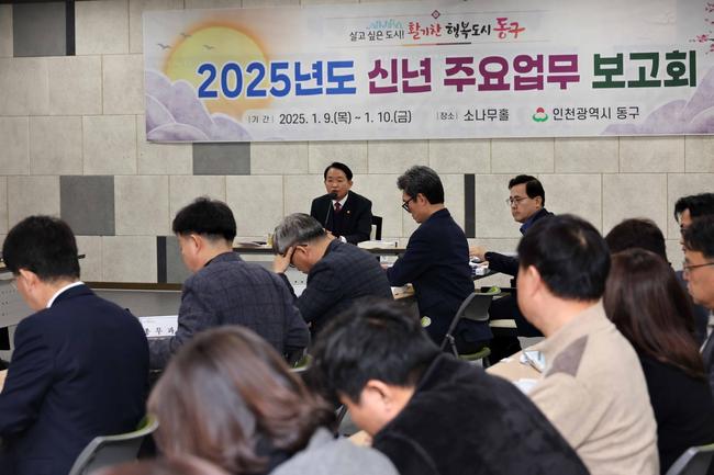인천 동구(구청장 김찬진)는 1월 9일∼10일까지 구청 소나무홀에서 구청장을 비롯한 부구청장, 국·과장 등이 참석한 가운데 `2025년도 신년 주요업무계획 보고회`를 개최했다고 밝혔다.