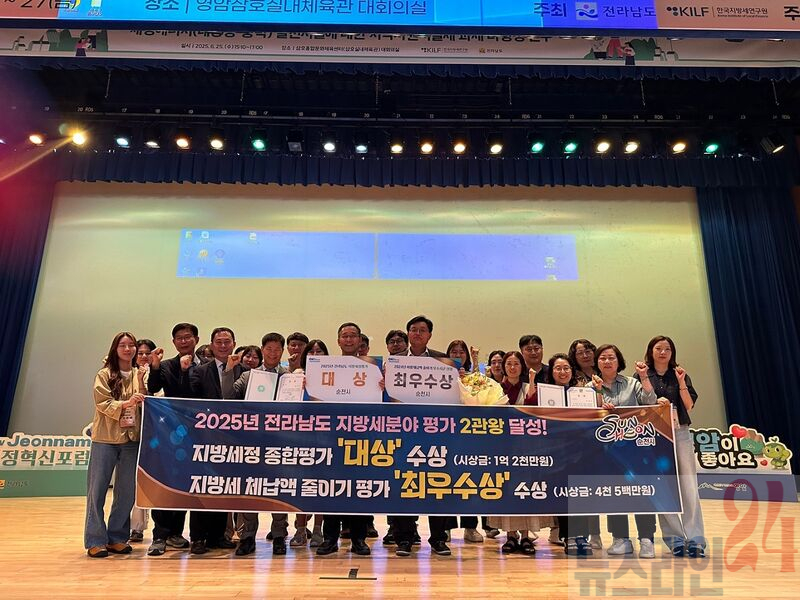 순천시(시장 노관규)는 전라남도가 도내 22개 시·군을 대상으로 실시한 2025년 지방세정 종합 평가에서‘대상’, 지방세 이월체납액 줄이기에서‘최우수상’을 수상하며 지방세 분야 평가에서 2관왕을 달성했다고 밝혔다.
