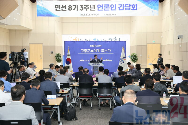 고흥군(군수 공영민)은 26일 군청 우주홀에서 언론인과 간부 공무원 등 100여 명이 참석한 가운데 민선 8기 3주년 언론인 간담회를 개최했다.