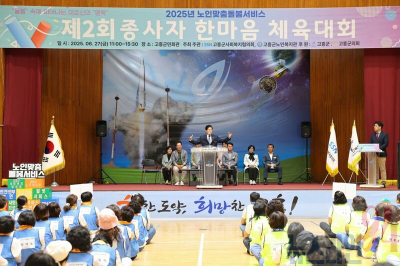 고흥군(군수 공영민)은 27일 고흥군민회관에서 노인맞춤돌봄서비스 수행 인력의 노고를 격려하고 수행 인력 간 화합을 도모하기 위해 ‘제2회 노인맞춤돌봄서비스 종사자 한마음 체육대회’를 개최했다고 밝혔다.