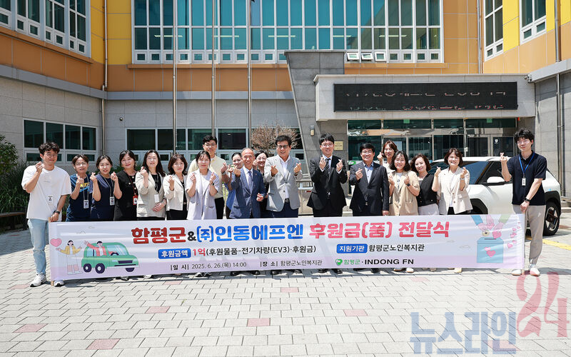 함평군은 29일 “여성의류 전문기업 ㈜인동FN(회장 장기권)이 지역 어르신 복지를 위해 1억 원 상당의 차량과 후원금을 기부했다”며 “전달식은 지난 26일 함평군 노인복지관에서 진행됐다”고 밝혔다.