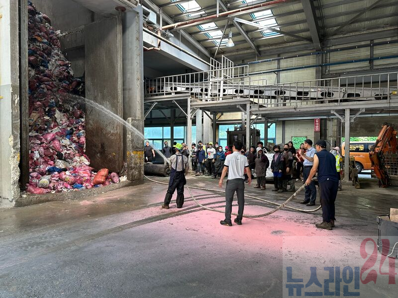 장흥군 그린환경센터에서는 지난 27일 소각장 및 재활용 선별장에서 자활센터와 그린환경센터 직원 30여 명이 모여 화재대응 소방훈련을 실시하였다.