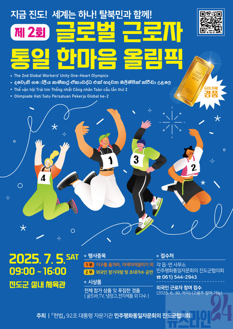 전남 진도군 실내체육관에서 북한이탈주민, 외국인 근로자, 지역 주민이 함께하는 ‘제2회 글로벌 근로자 통일 한마음 올림픽’이 오는 7월 5일(토) 오전 9시에 개최될 예정이다.