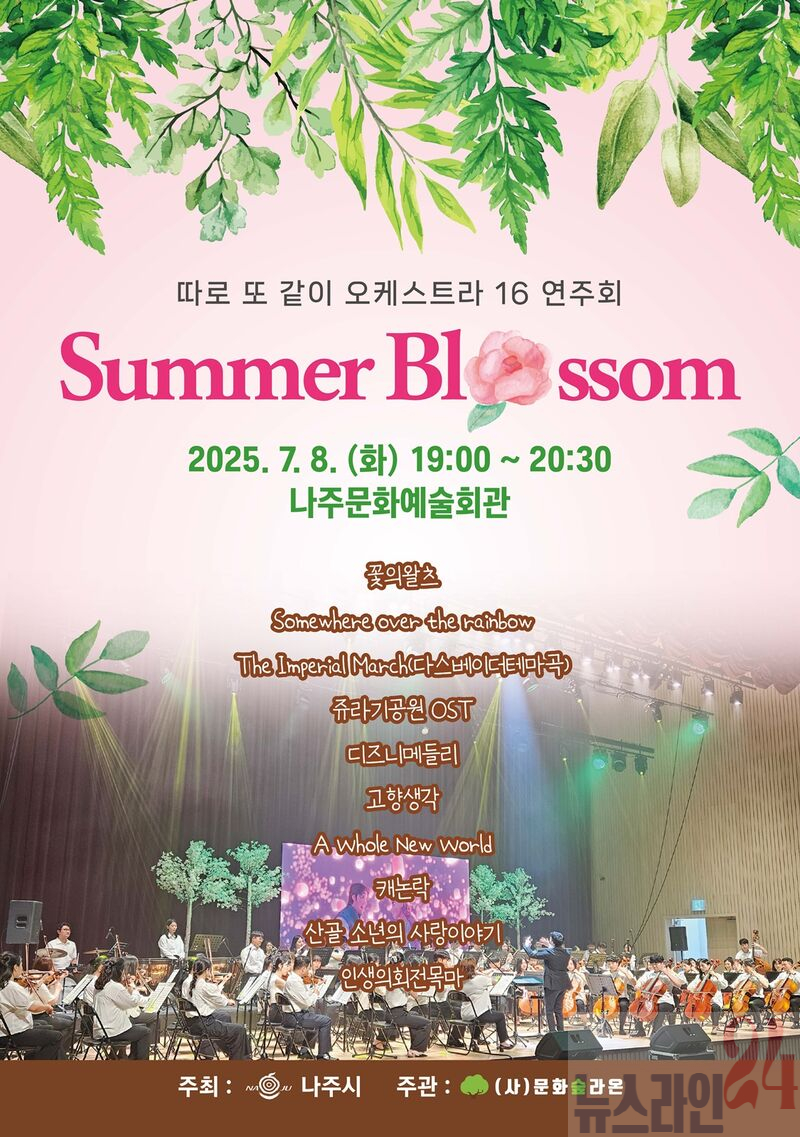 나주시(시장 윤병태)는 오는 7월 8일 오후 7시 나주문화예술회관 공연장에서 ‘2025년 따로 또 같이 오케스트라 16 정기연주회’를 개최한다고 30일 밝혔다.