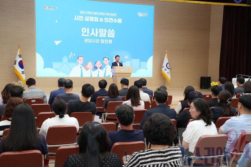 광양시는 지난 6월 30일 시청 시민홀에서 학부모, 교육 및 사회단체 관계자, 이통장, 주민자치위원 등을 대상으로 ‘대학생 생활비 장학금 지원사업(안)’ 시민 설명회를 열고 시민 의견을 수렴했다고 밝혔다.