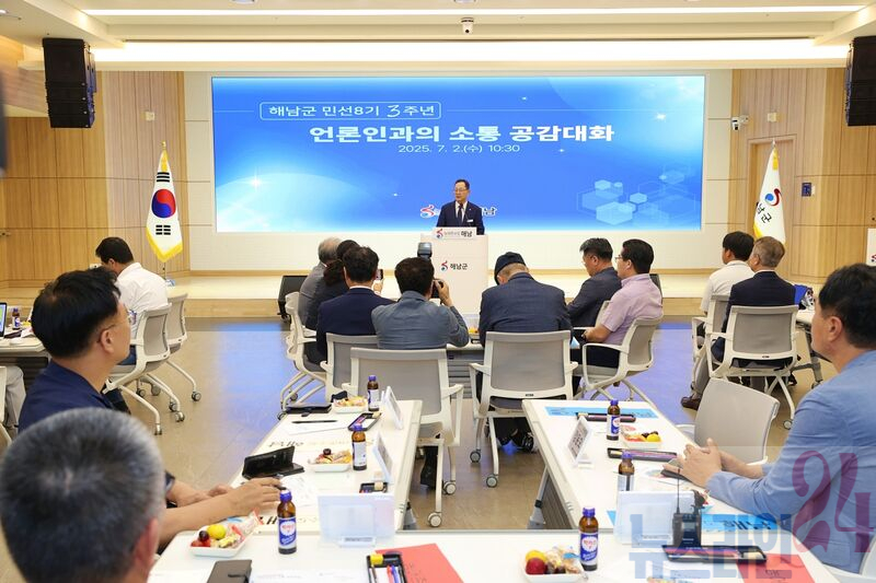 해남군은 2일 군청 대회의실에서 민선8기 3주년 언론인 간담회를 갖고, 지난 민선7~8기 7년의 성과를 돌아보고, 앞으로 군정발전 방향과 비전을 설명하는 대화의 시간을 가졌다.