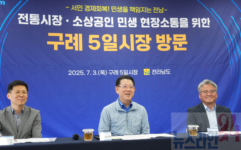 3일 전통시장·소상공인 경영애로 청취를 위한 금융버스 ‘가드림’ 일일명예지점장으로 위촉된 김영록 전라남도지사가 구례5일시장에서 전통시장·소상공인을 대상으로 보증상담 업무를 지원하며 고충과 건의 사항을 청취하고, 지역경제 활성화 방안을 모색하는 현장 상담회를 개최했다.