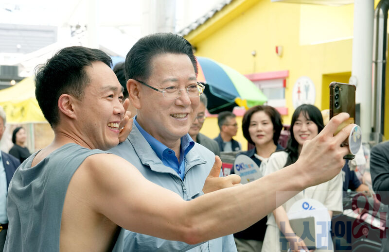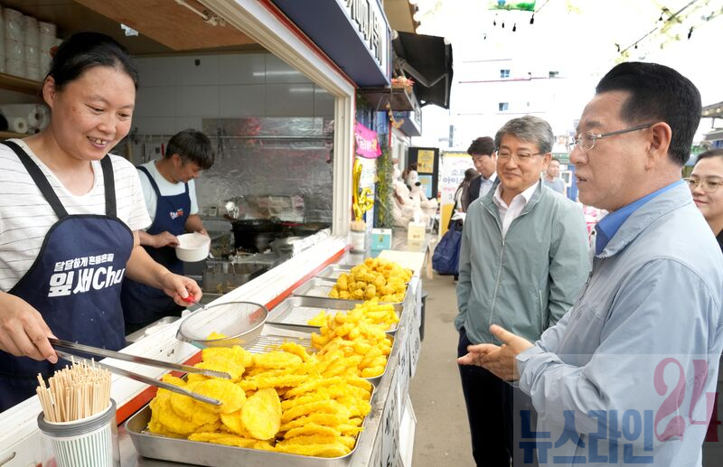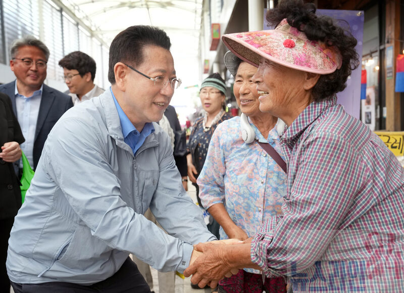 3일 전통시장·소상공인 경영애로 청취를 위한 금융버스 ‘가드림’ 일일명예지점장으로 위촉된 김영록 전라남도지사가 구례5일시장을 둘러보며 상인들을 격려하고 있다.