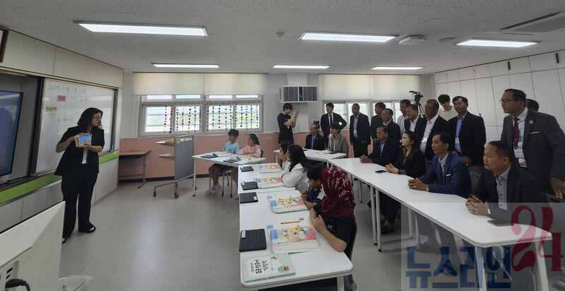 뿟 싸밋 차관보를 비롯한 23명의 캄보디아 교육계 인사들은 7월 2일 전남 영암의 대불초등학교를 찾아 한국어 학급 수업 현장을 참관하고, 교실·특별실·도서관 등 학교 시설을 둘러봤다.