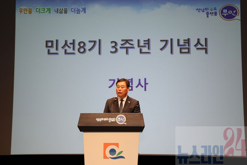 전남 무안군(군수 김산)은 4일 승달문화예술회관에서 민선 8기 출범 3주년 기념식을 열고, 지난 3년간의 성과를 돌아보며 남은 임기 동안의 비전과 실천 전략을 공유했다.
