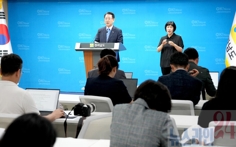 김영록 전라남도지사가 11일 오전 도청 브리핑룸에서 긴급 기자회견을 열고, 이재명 정부가 발표한 ‘RE100 산업단지 및 에너지 신도시 조성’ 정책을 전폭 환영한다고 밝혔다. 김 지사는 “전남이 오랜 시간 준비해 온 에너지 대전환 전략이 드디어 결실을 맺을 골든타임을 맞았다”며 “이재명 정부가 대한민국 산업지도를 바꿀 새로운 길을 전남에 열어줬다”고 강조했다.