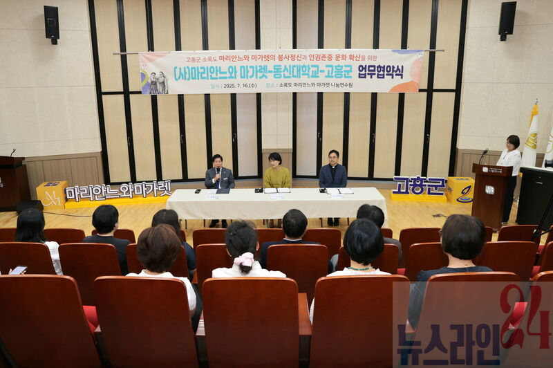 고흥군(군수 공영민)은 7월 16일 소록도 마리안느‧마가렛 나눔연수원에서 동신대학교, (사)마리안느와 마가렛과 함께 마리안느와 마가렛 두 간호사에 대한 선양사업 협력 및 나눔연수원 이용 활성화를 위한 3자 간 업무협약을 체결했다.