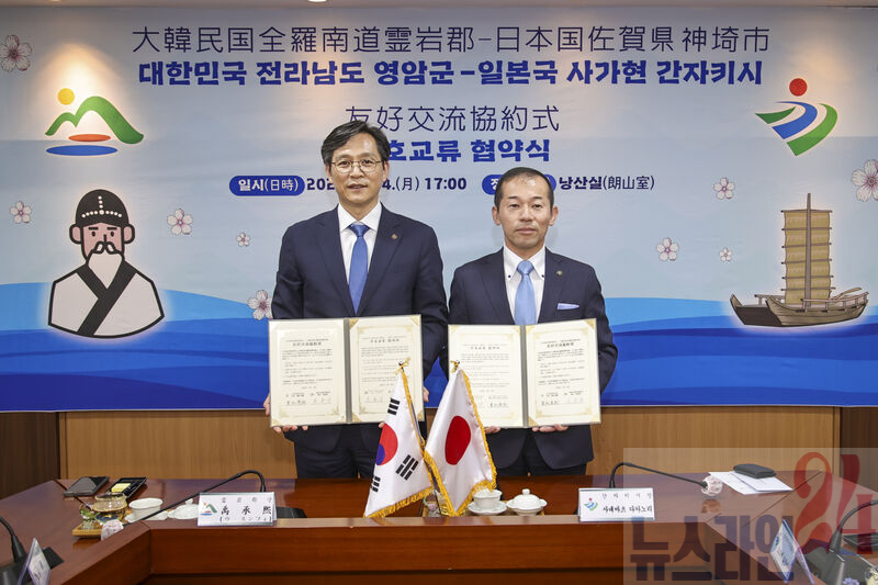 영암군(군수 우승희)이 14일 군청에서 일본 사가현 간자키시와 우호교류 협약을 체결했다.