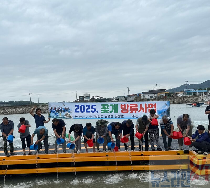 방류 작업은 손불면 월천항 일대에서 진행됐으며, 월천어촌계와 지역 어업인 등 40여 명이 참여해 힘을 보탰다.