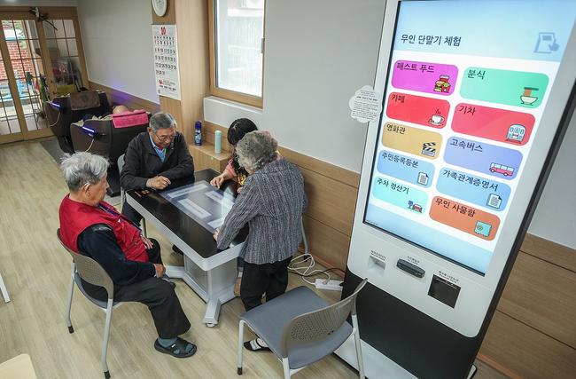 또, 스마트 기술을 활용해 실내 걷기 운동을 할 수 있는 `스마트 헬스케어 서비스(스마트 워크)`, 다양한 게임을 통해 인지능력 향상과 치매 예방에 도움을 주는 `스마트테이블` 외에도 어르신들이 노래를 부르면서 여가활동을 즐길 수 있는 `노래건강기기`, 디지털 격차 해소를 위한 `체험 키오스크` 등을 만나볼 수 있다.