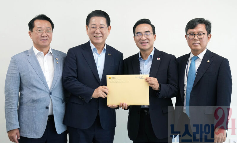 김영록 전라남도지사(오른쪽)가 23일 서울 국정기획위원회에서 안도걸 국정기획위원회 위원과 면담을 갖고 전남 미래발전 핵심과제 등 도 현안 해결을 위한 건의 및 협조를 요청하고 있다.